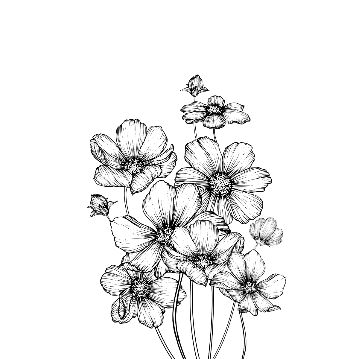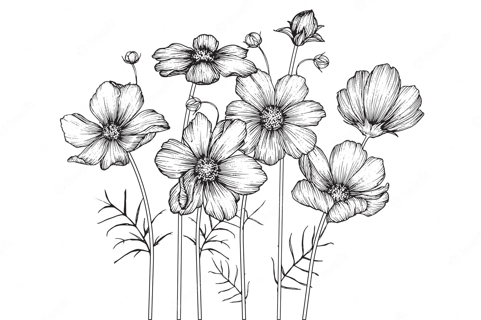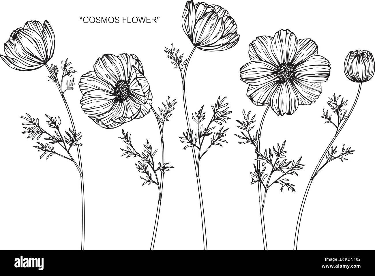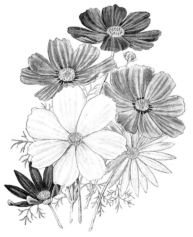 Космея рисование черно белая
