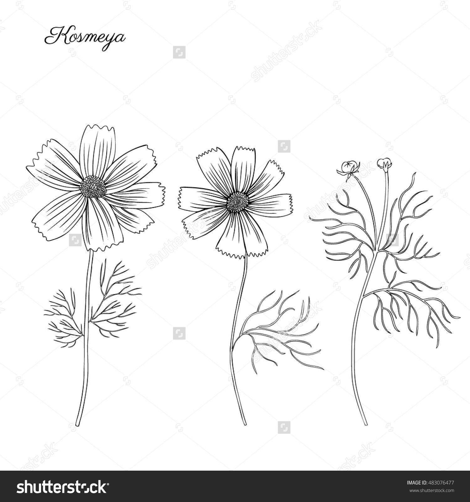 ![Космея дваждыперистая Ботаническая иллюстрация]()