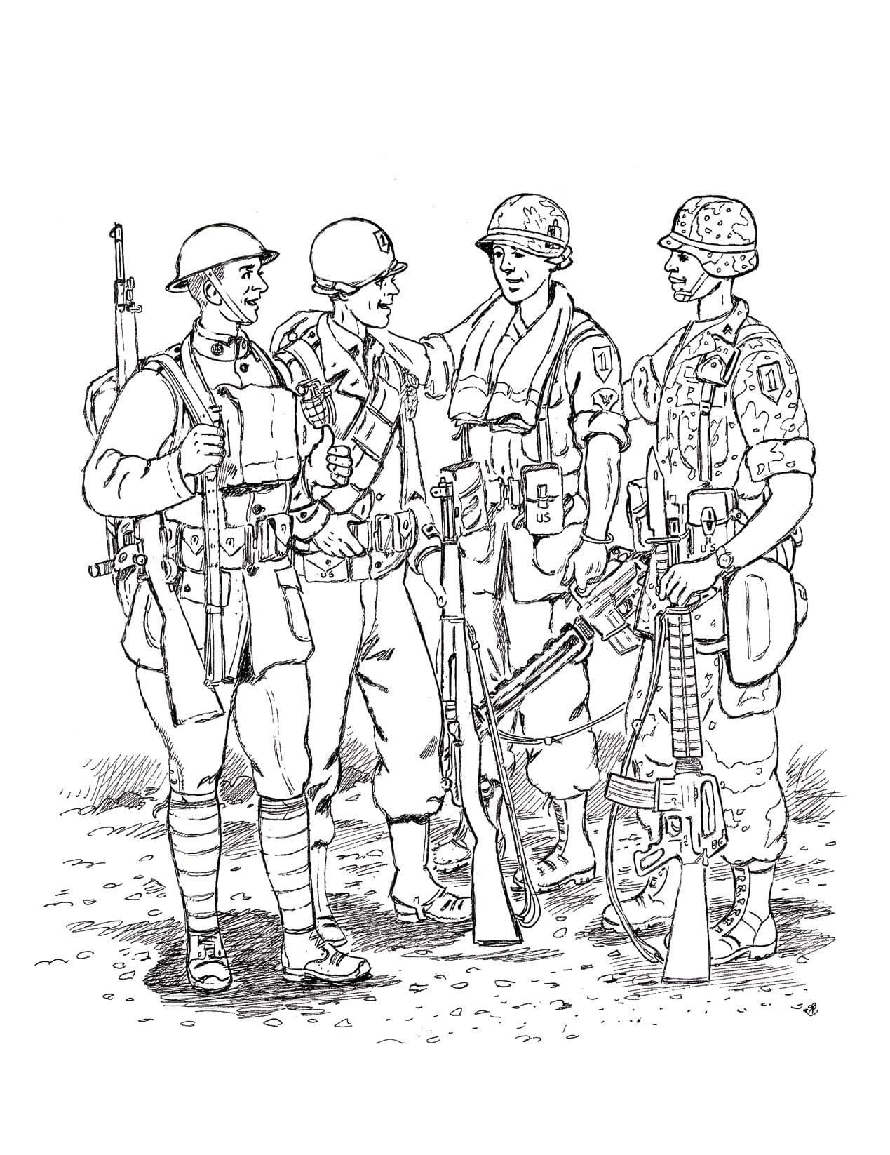 Раскраска военные солдаты