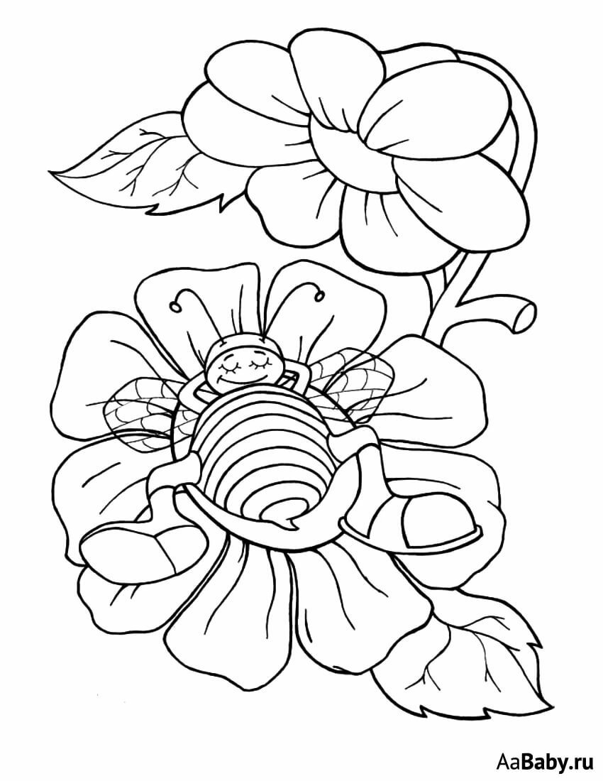 ![Раскраска Пчелка на цветке]()