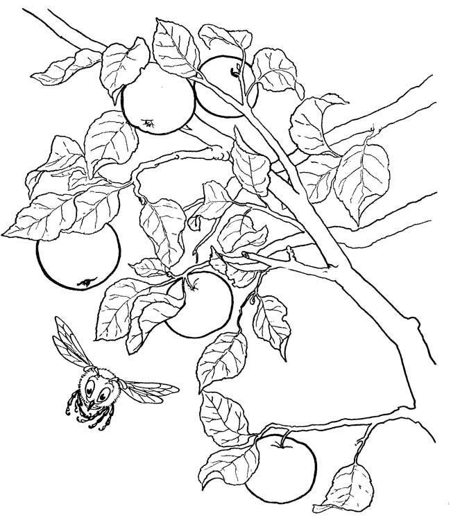 Ветка яблони с яблоками раскраска