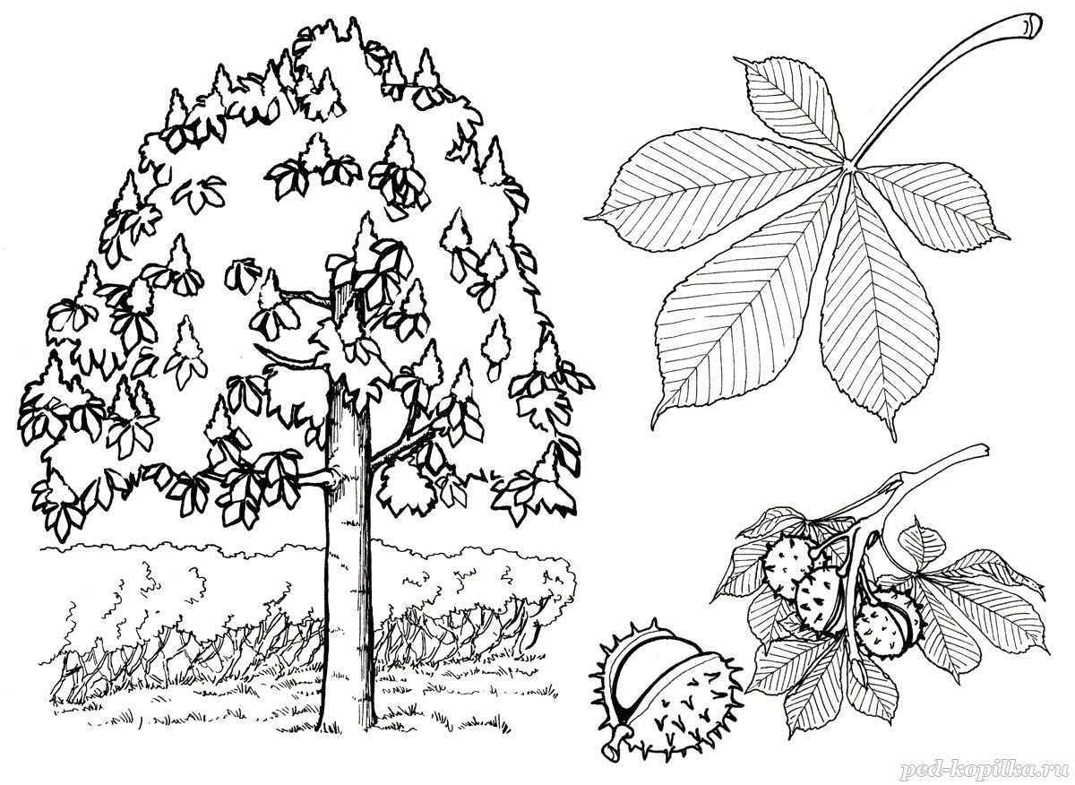 ![Раскраска деревья и кустарники для детей]()