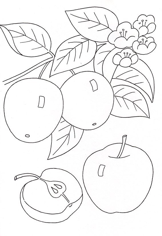 ![Ветка яблони с яблоками раскраска]()