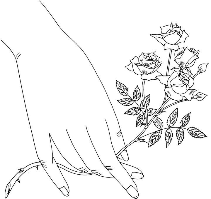 ![Нарисованная рука с букетом]()