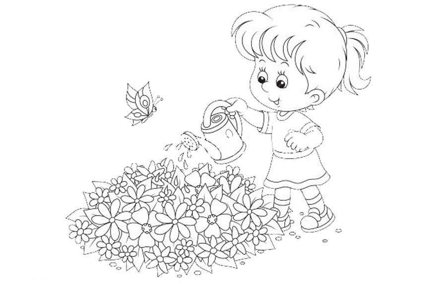 Девочка с лейкой раскраска для детей