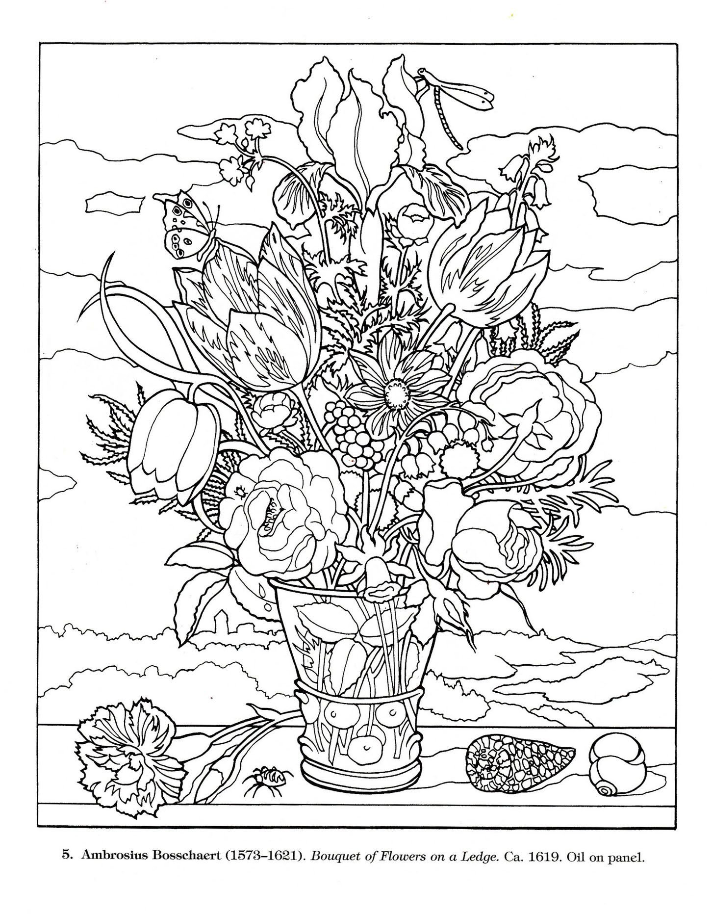 ![Раскраска натюрморт с цветами]()