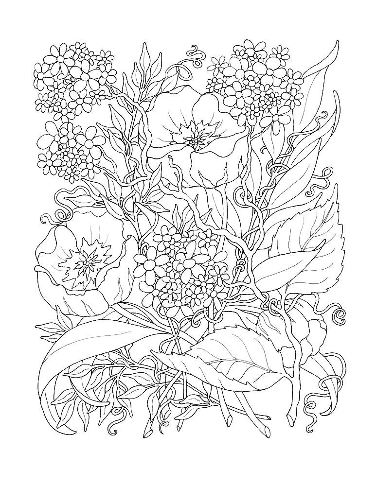 Раскраски антистресс цветы сложные