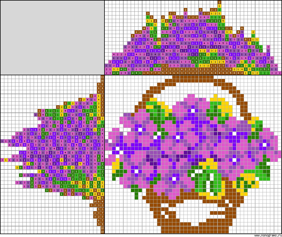 Погрузитесь в мир ярких и красочных раскрасок по клеткам с цветами! Эти удивительные раскраски не только развлекут вас, но и помогут развить ваше чувство цвета и творческие способности. Вам предстоит заполнить каждую клетку правильным оттенком, создавая живописные изображения цветов, растений и природы. Выберите свою любимую палитру и начинайте окрашивать - это отличный способ провести время в кругу семьи или снять стресс после долгого рабочего дня. Раскраски по клеткам с цветами подарят вам много радости и вдохновения!