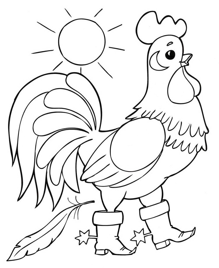 Раскраски к сказке петушок и бобовое зернышко для детей