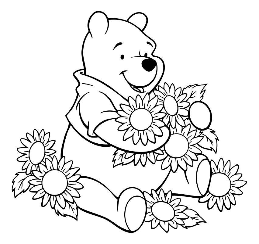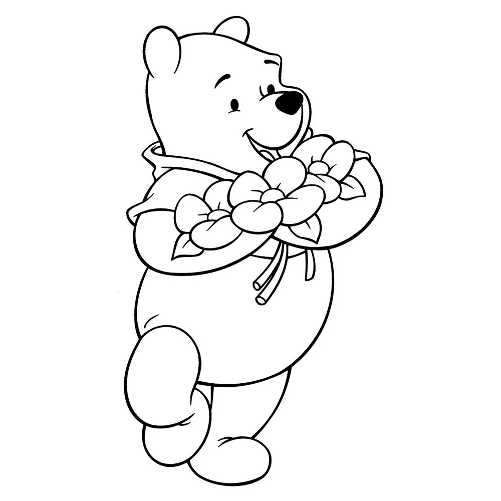 Мишка с цветами раскраска