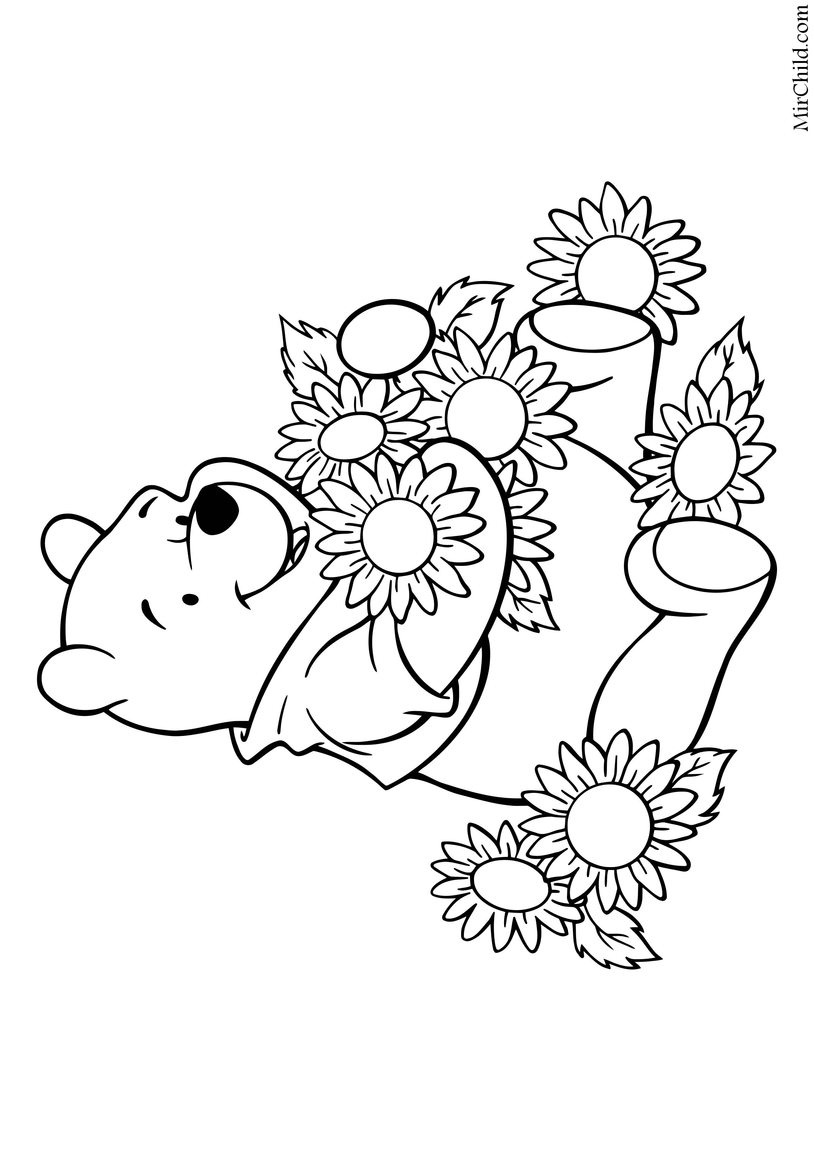 Медвежонок с цветами раскраска