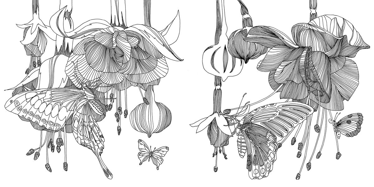 ![Чудесный мир цветов раскраска]()