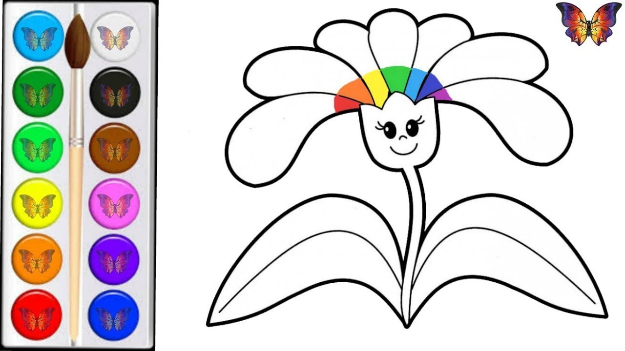![Раскраска цветочек с радугой]()