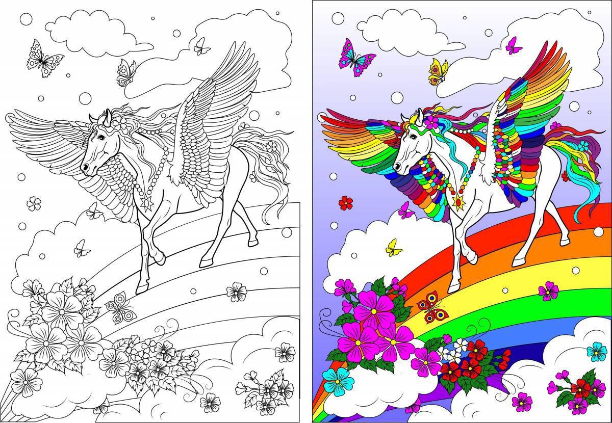 ![Раскраска Единорог с радугой]()