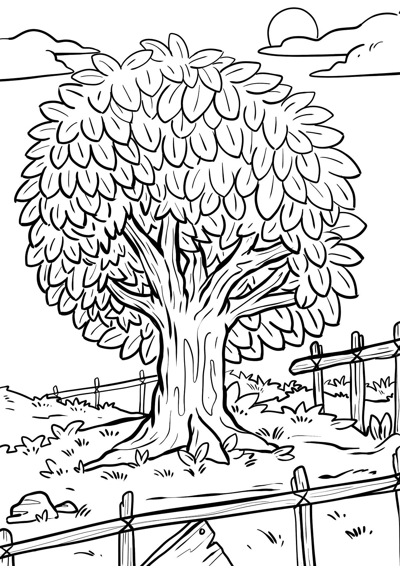Дерево с большой кроной раскраска