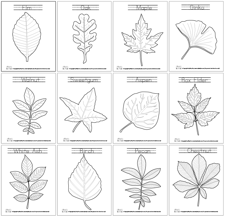 Листья деревьев раскраска