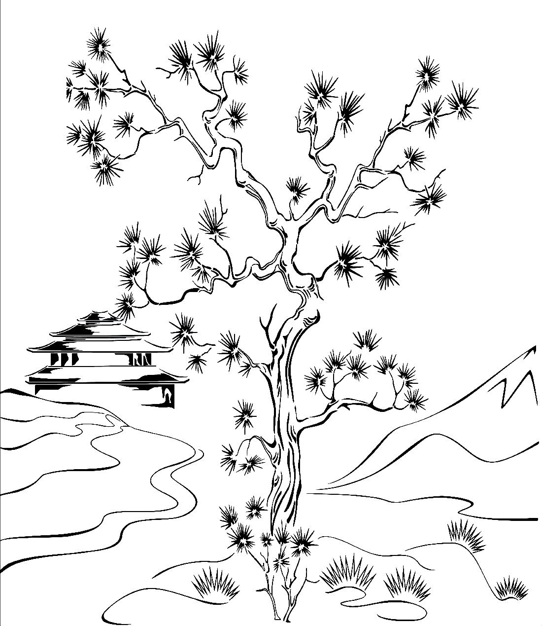 ![Японский орнамент дерево]()