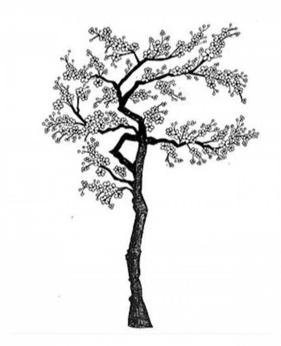 Дерево Сакура карандашом