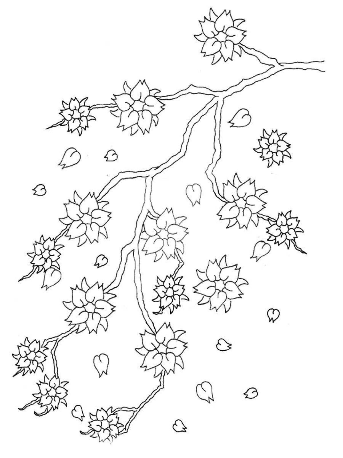 Веточка Сакуры раскраска
