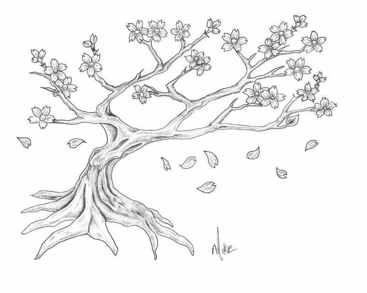 Раскраска цветущего дерева