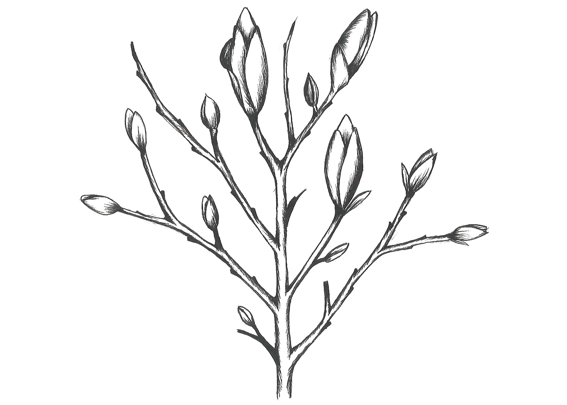 Ветки дерева с почками раскраска
