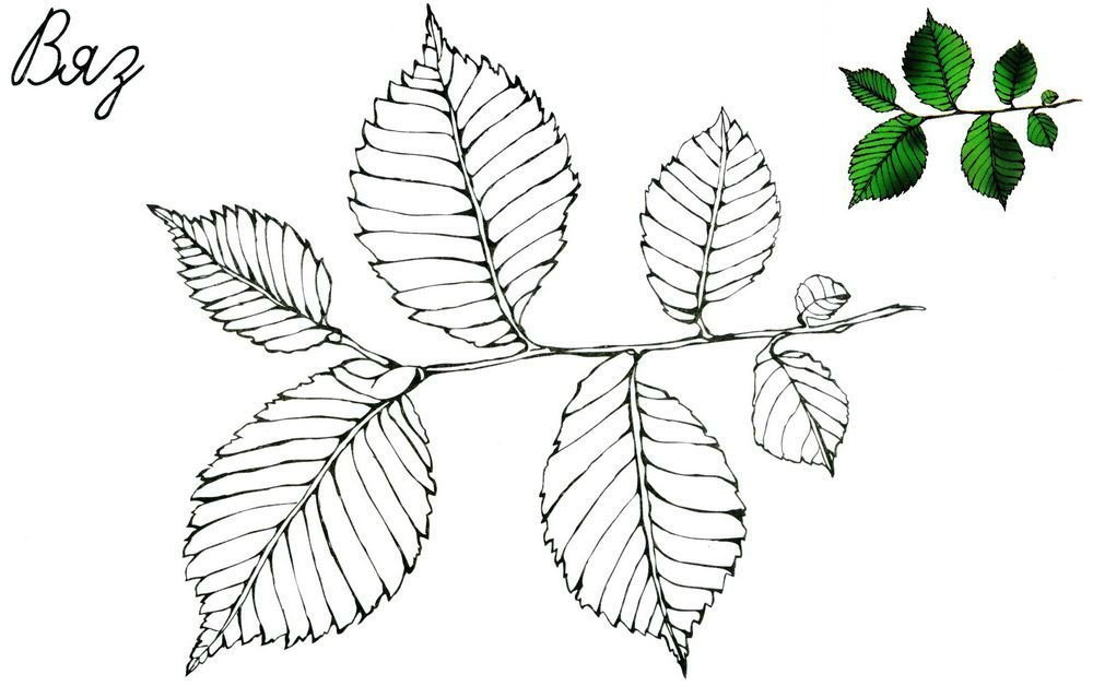 ![Лист вяза раскраска]()