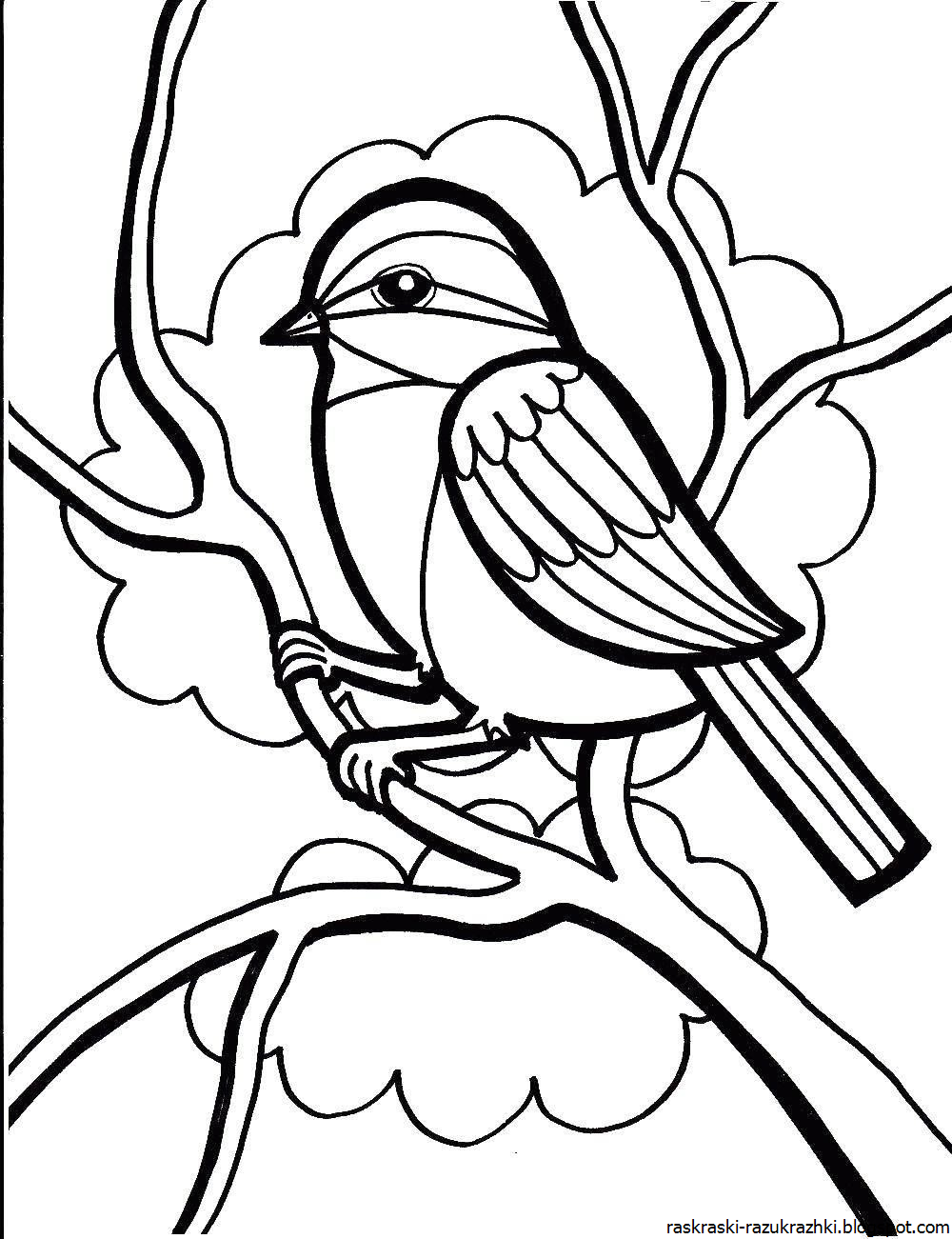Птица на ветке раскраска для детей