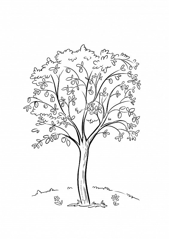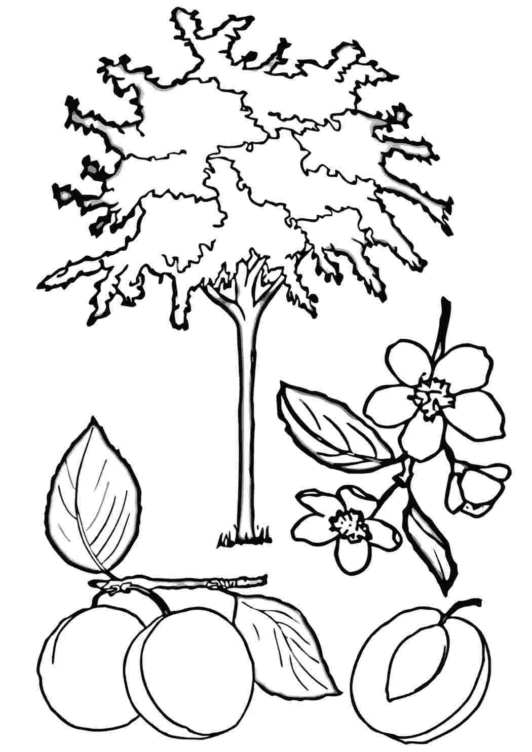 ![Абрикосовое дерево раскраска]()
