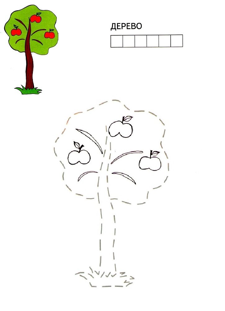 ![Дерево по точкам для дошкольников]()