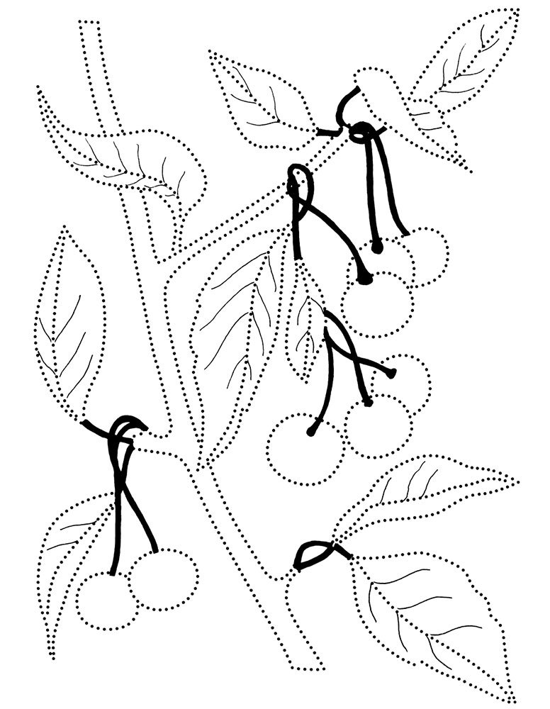 ![Пунктирные контуры фруктов]()