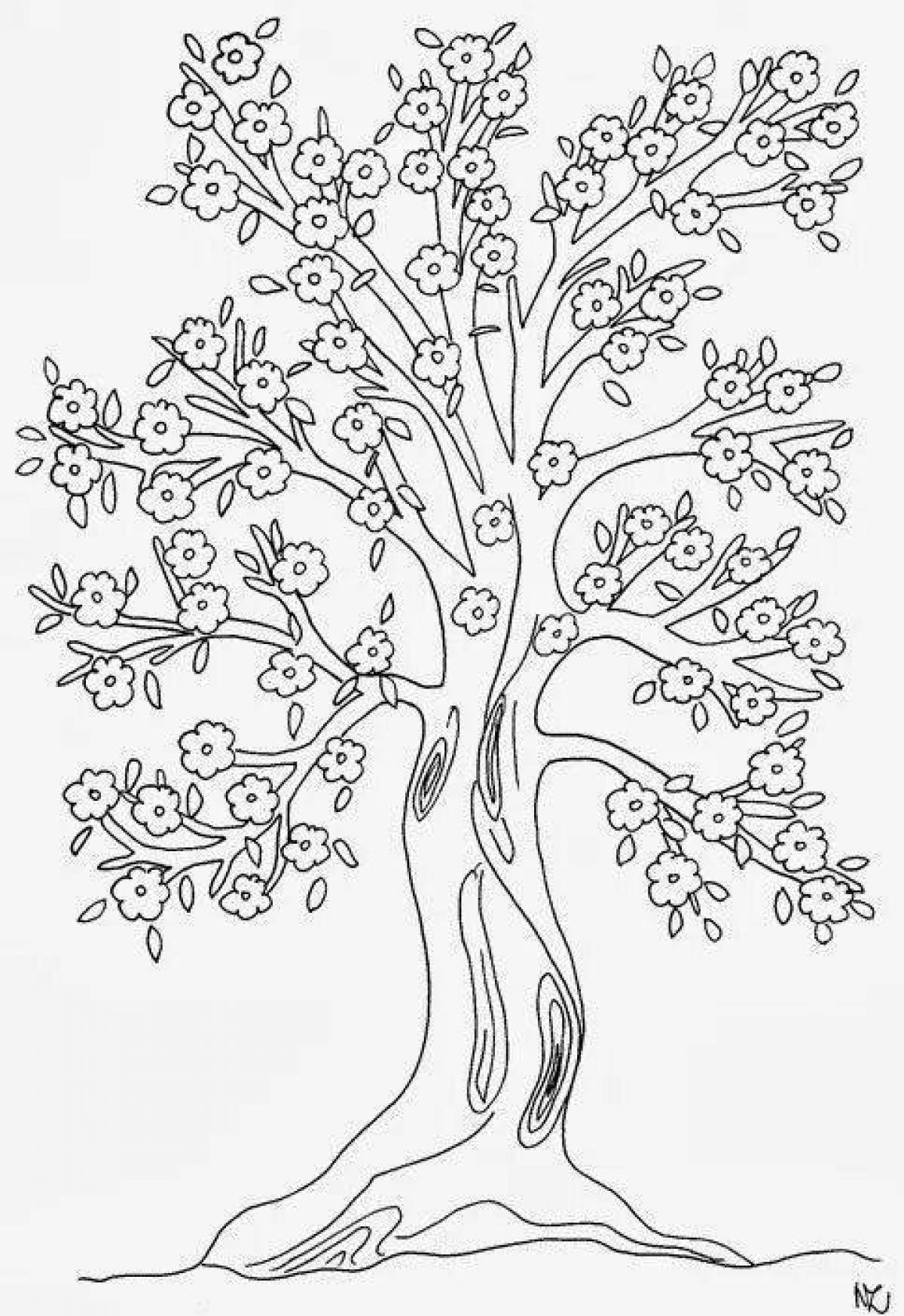 Весеннее дерево раскраска