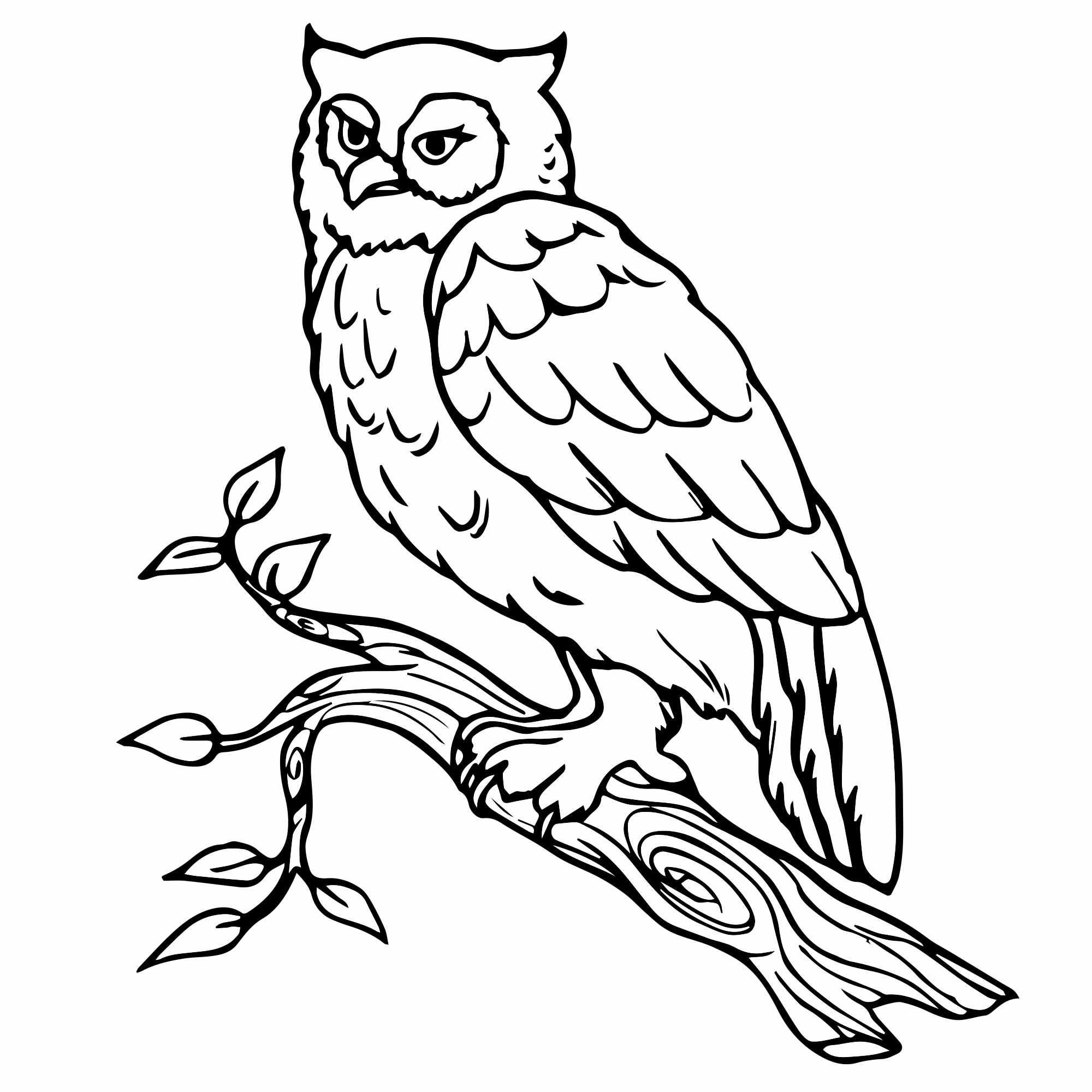 Сова на ветке раскраска