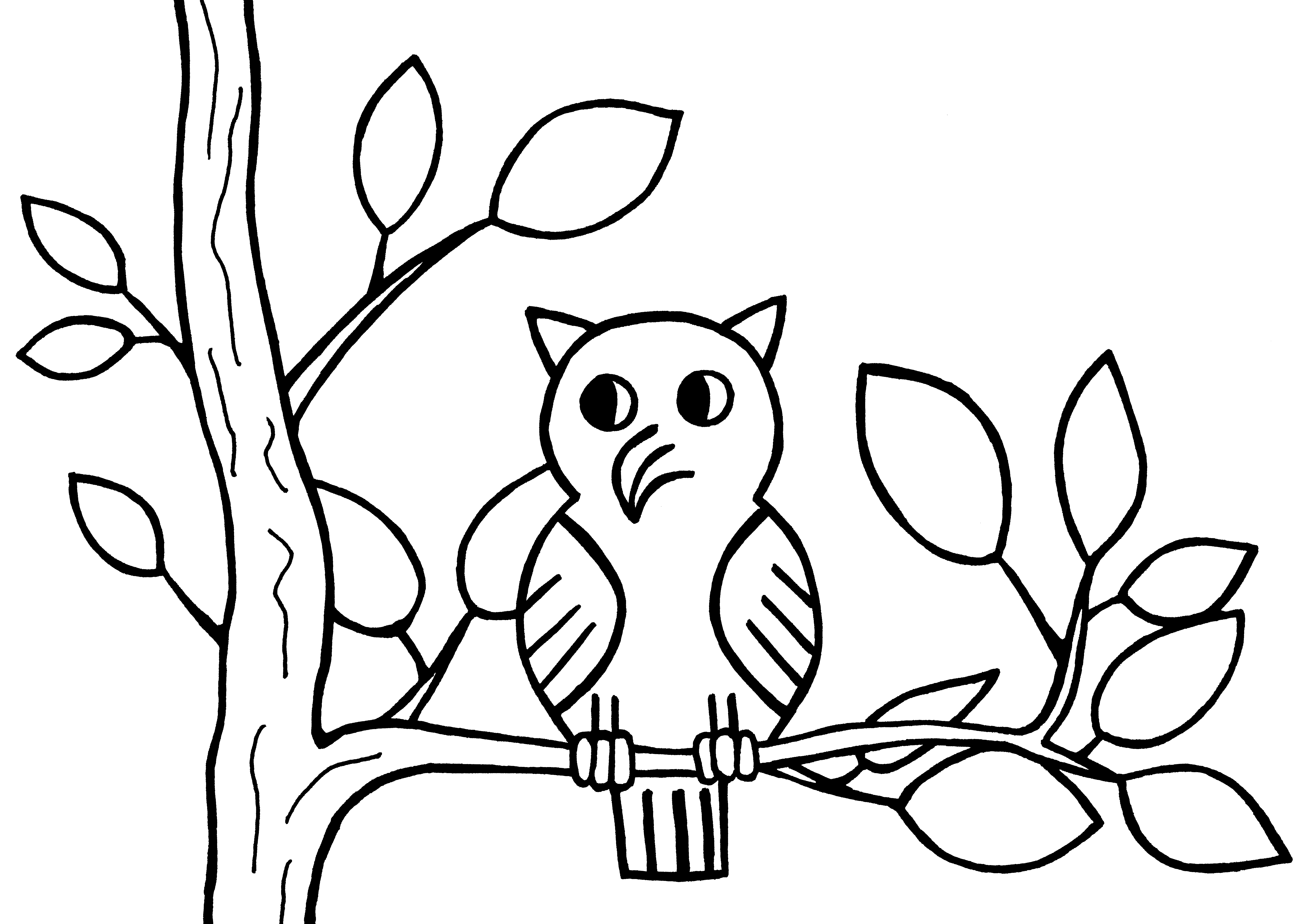 ![Филин на дереве раскраска]()