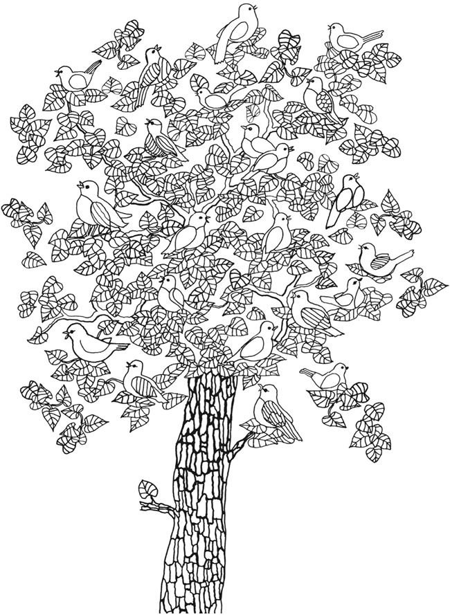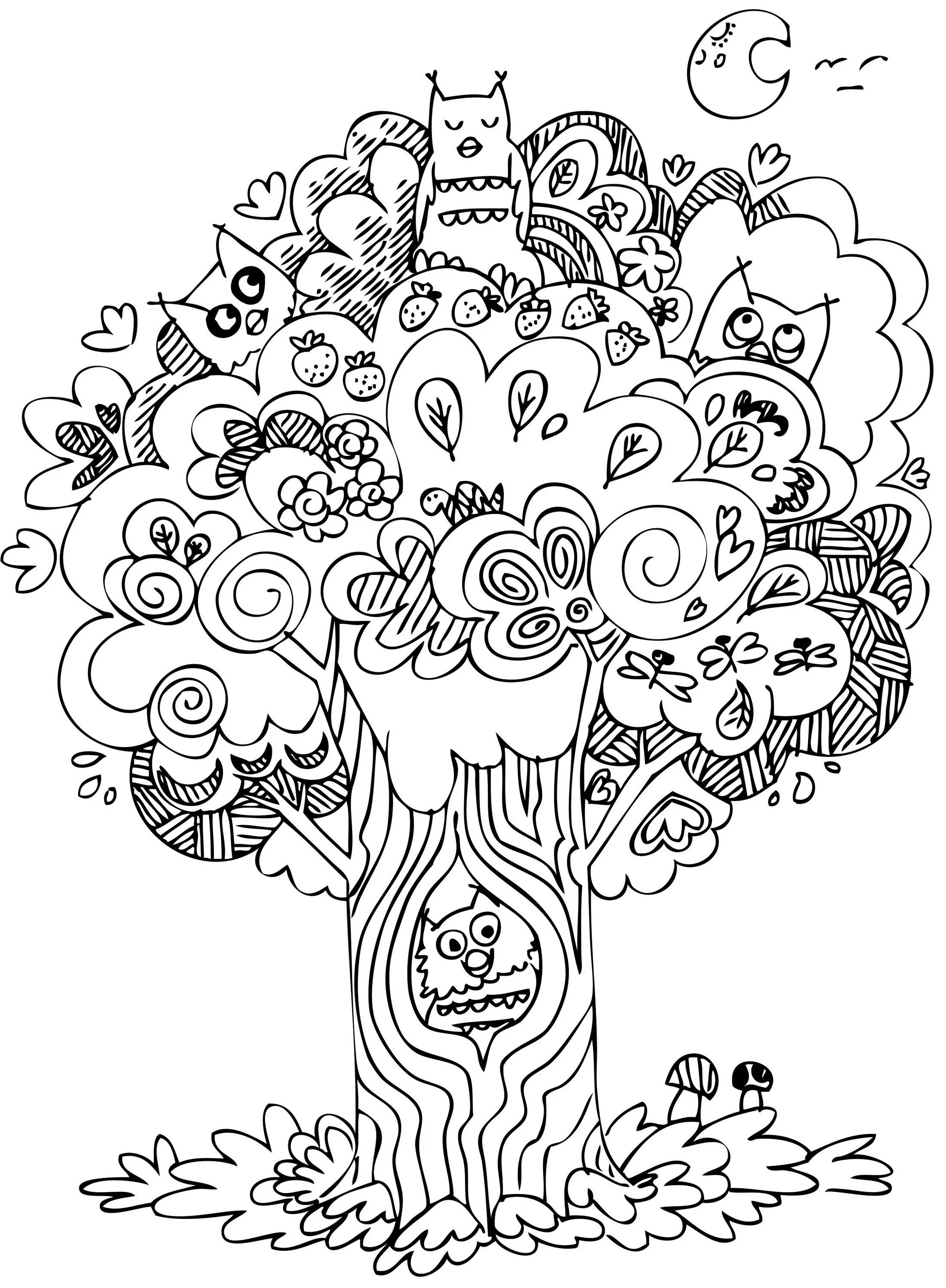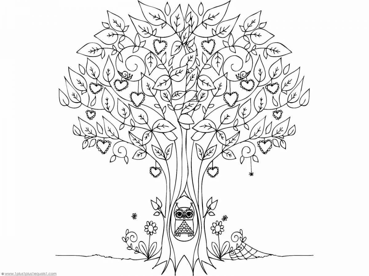 ![Раскраска антистресс дерево для детей]()