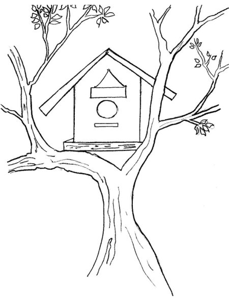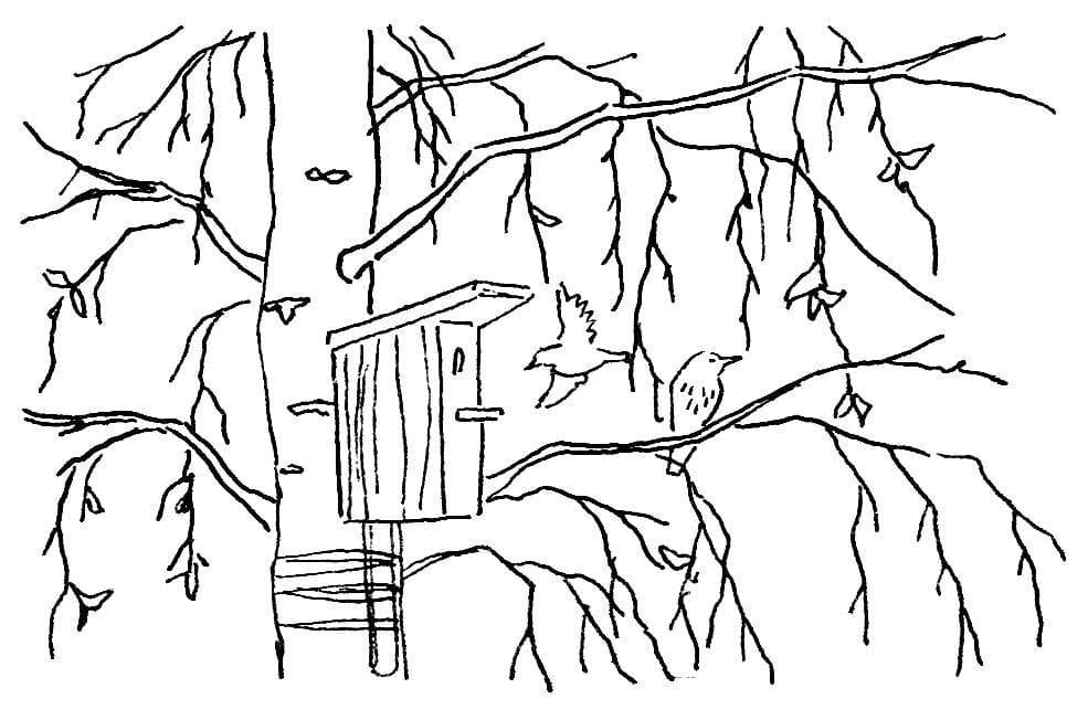 Раскраска скворечник на дереве