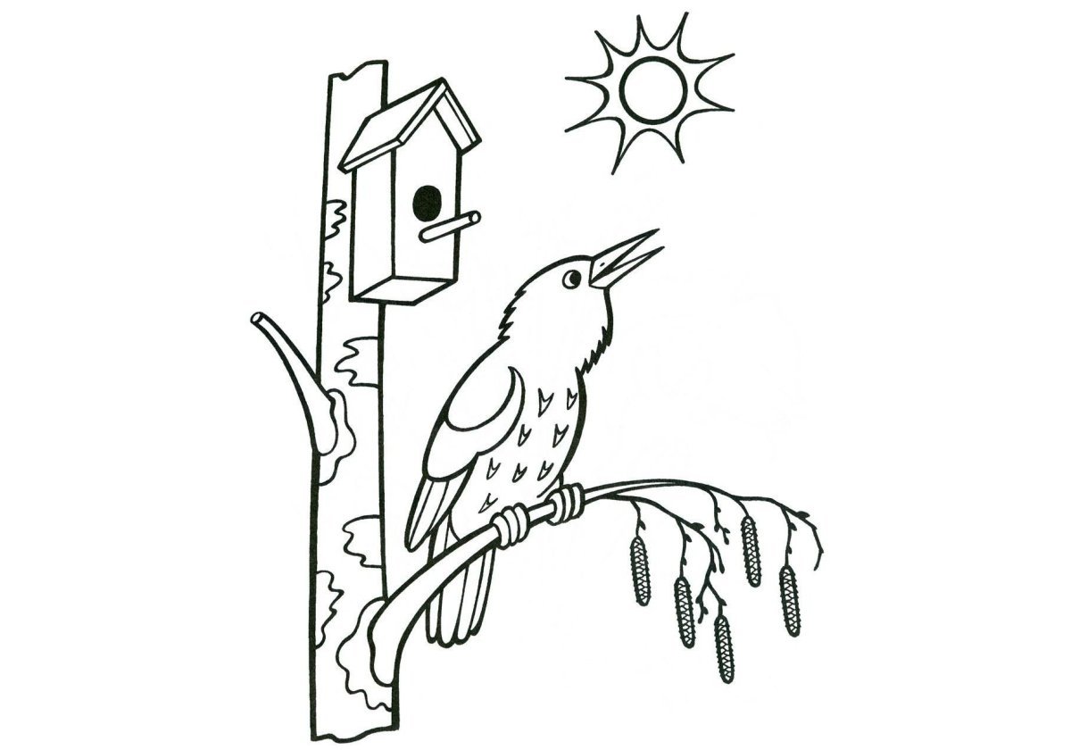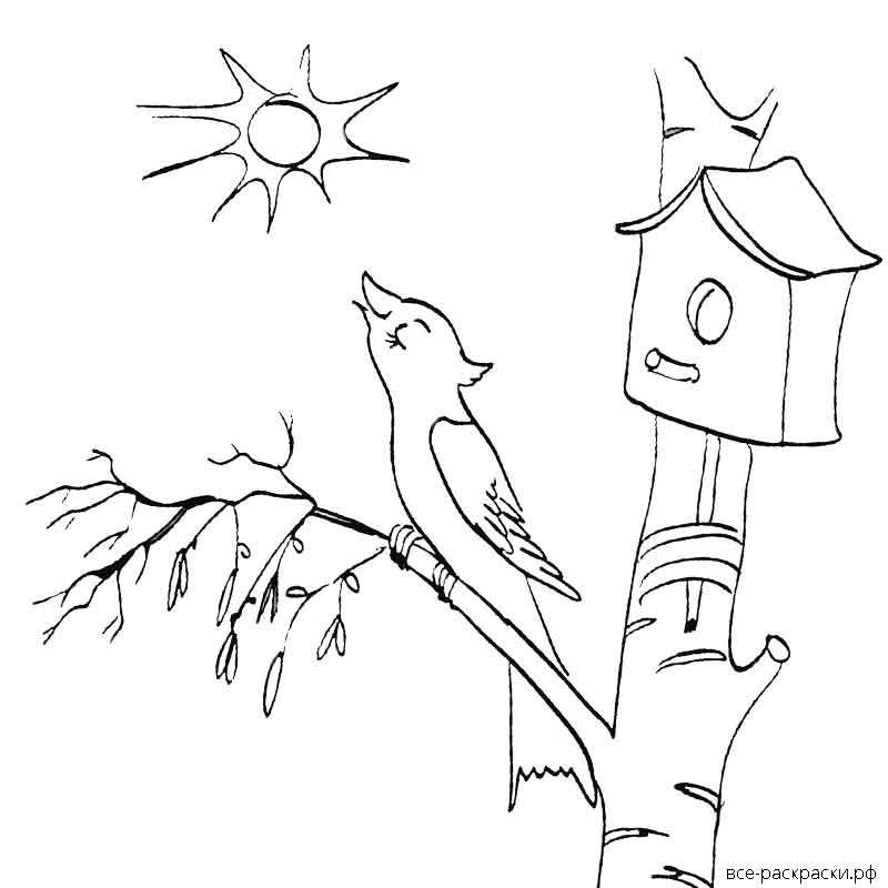 ![Раскраска Весна скворечник]()