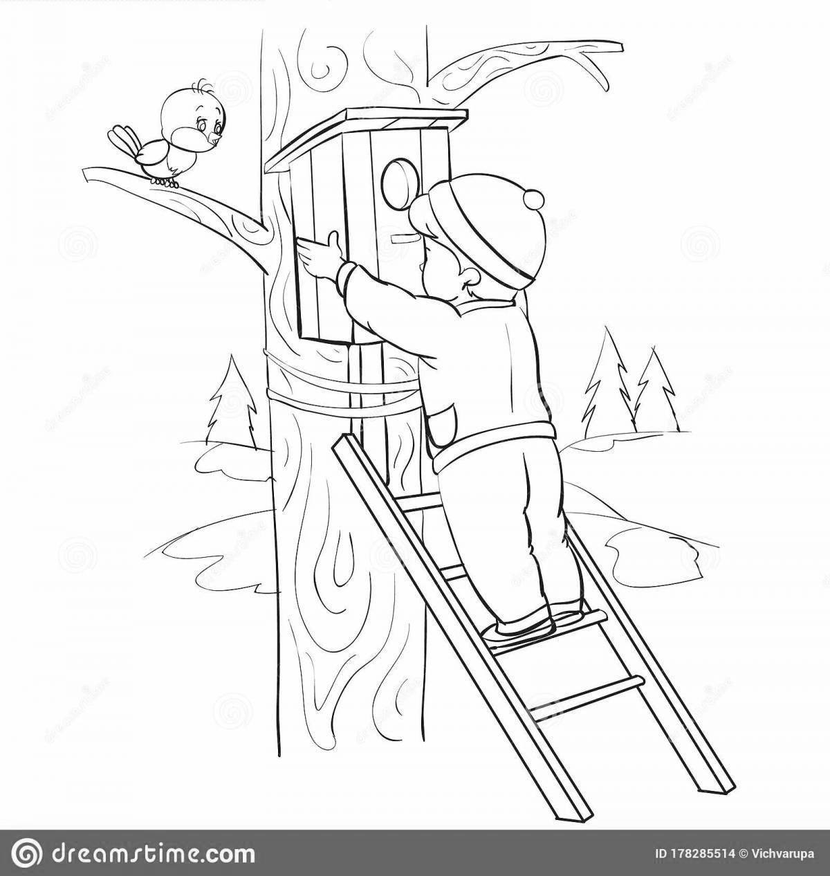 ![Раскраска мальчик со скворечником]()