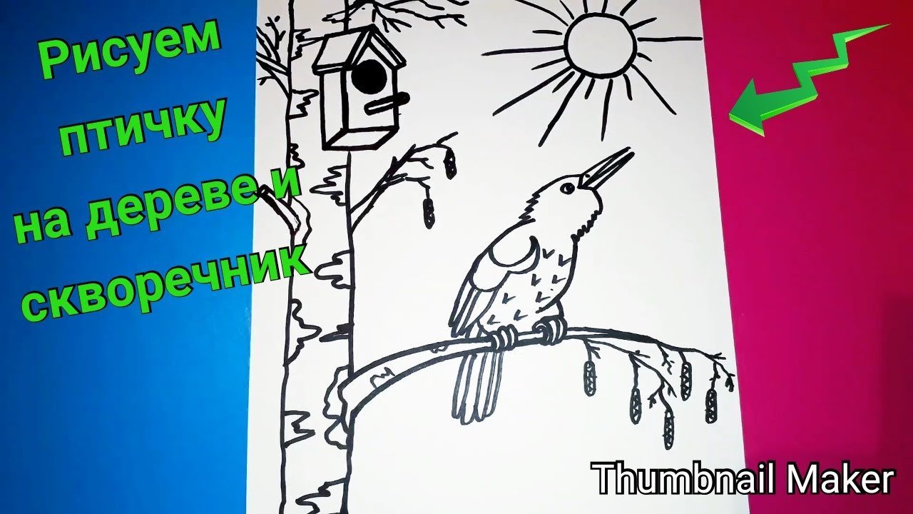 Скворечник на дереве рисунок