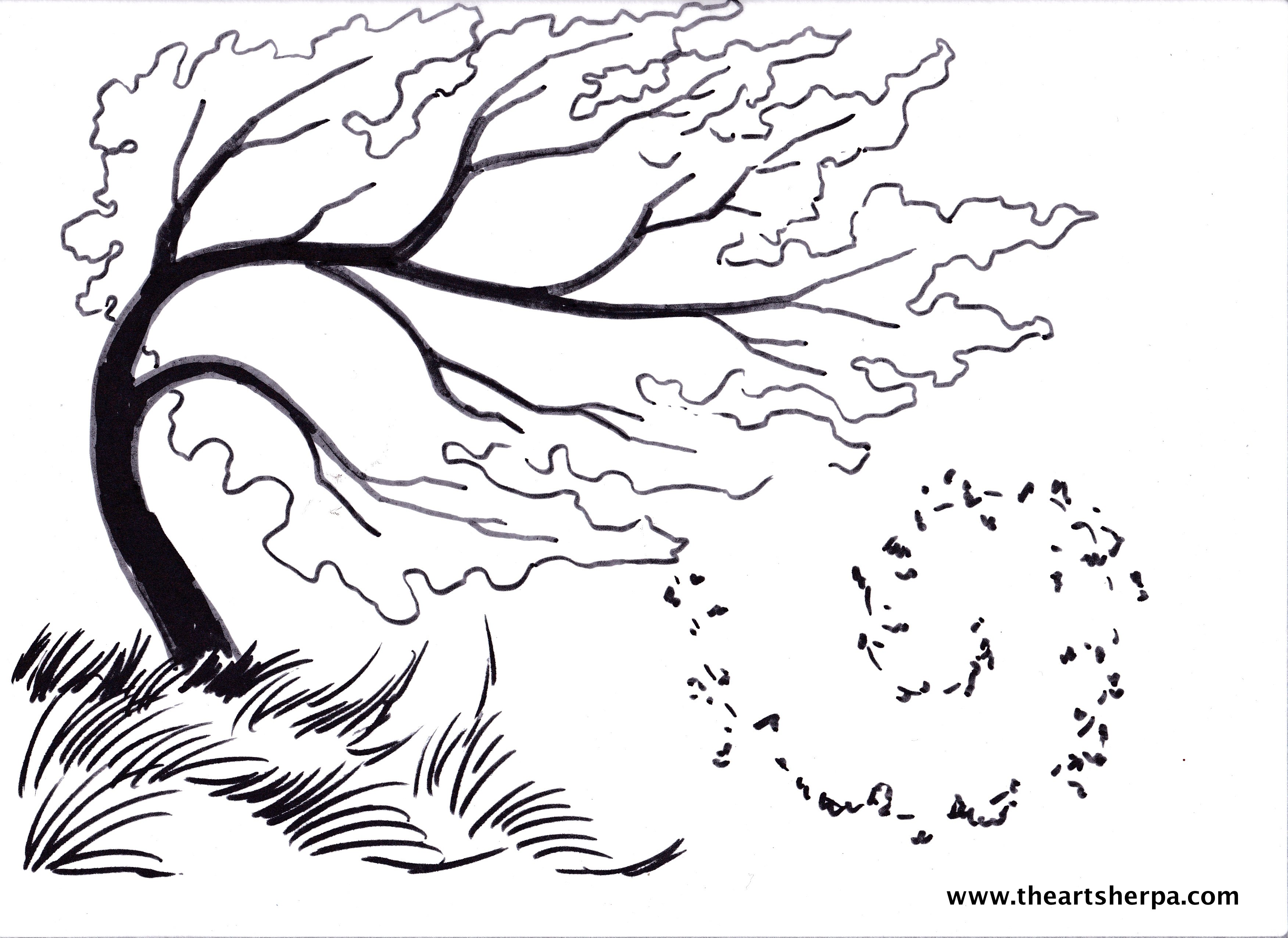 Дерево на ветру раскраска