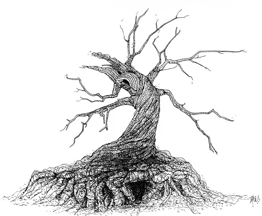 Мрачное дерево карандашом