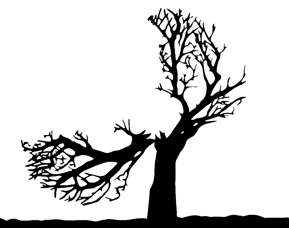 Дерево на ветру силуэт