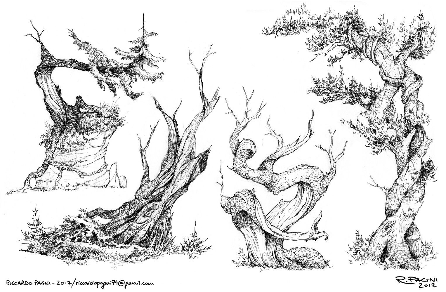 ![Скетч лес деревья]()