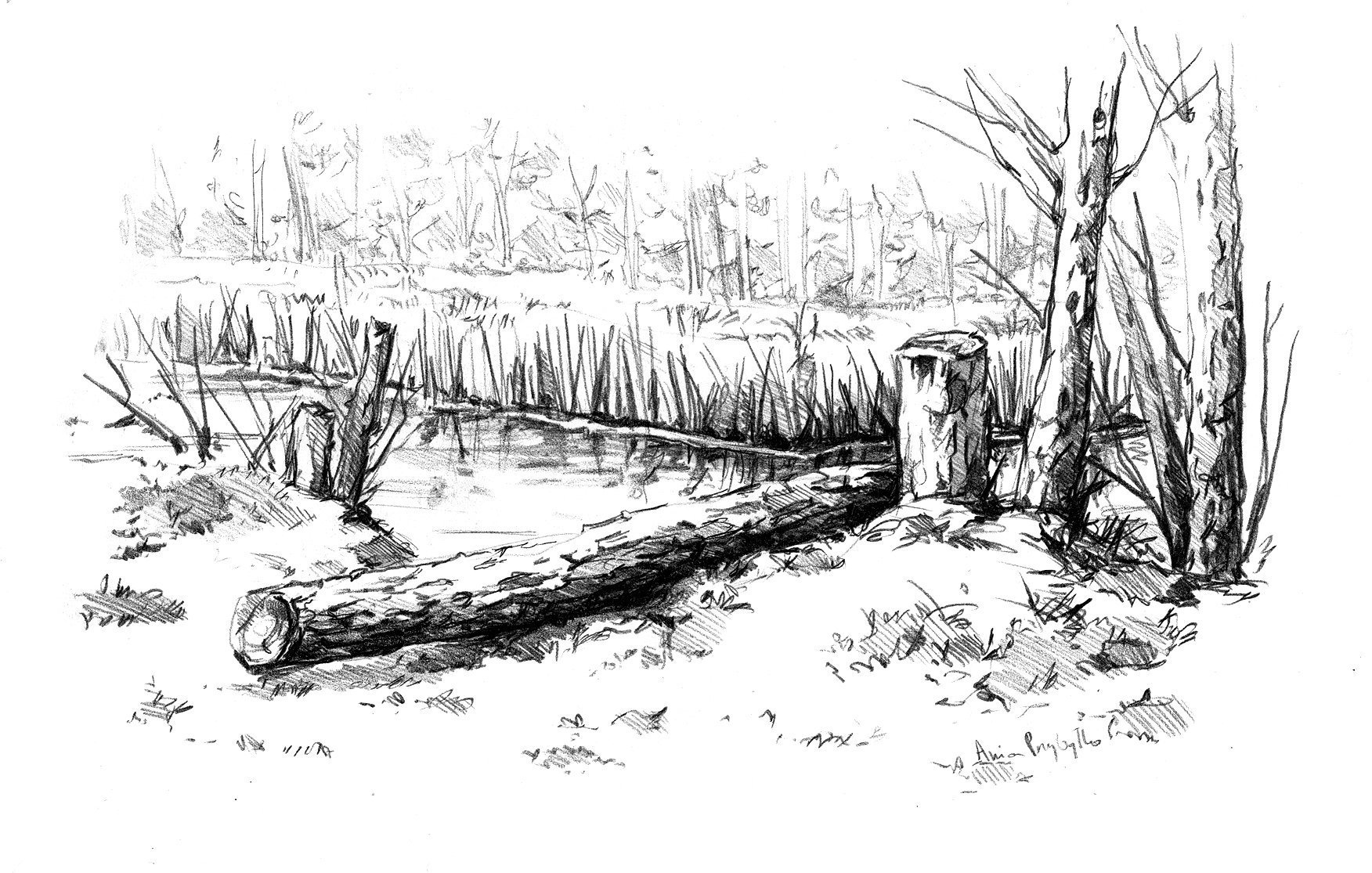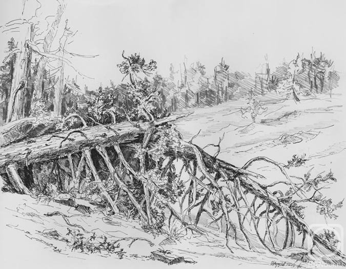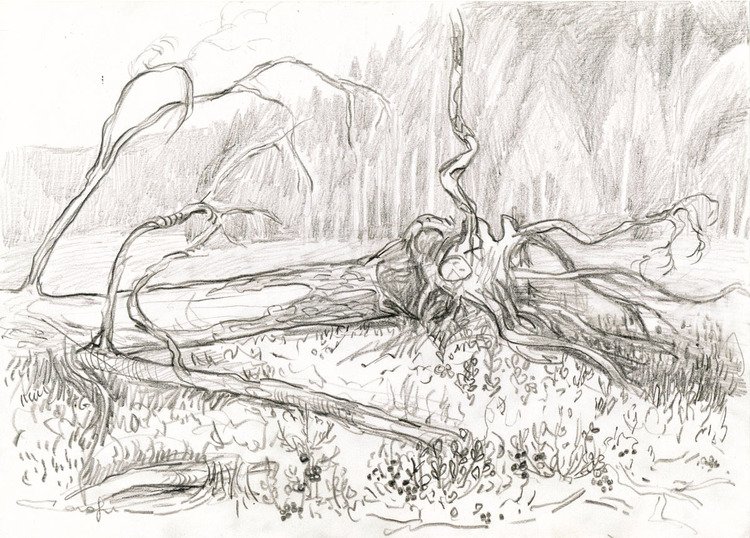 ![Поваленное дерево карандашом]()