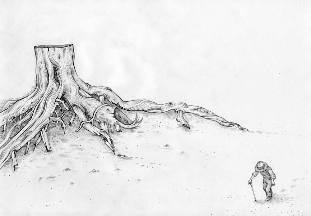 Старое дерево карандашом