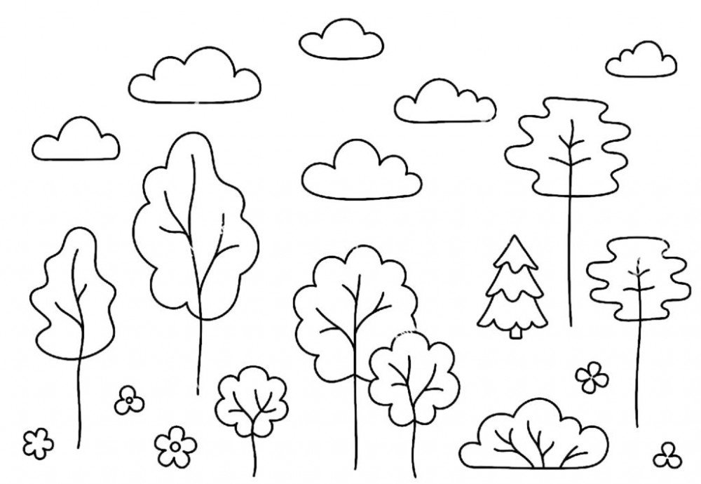 Деревья много разных раскраска для детей