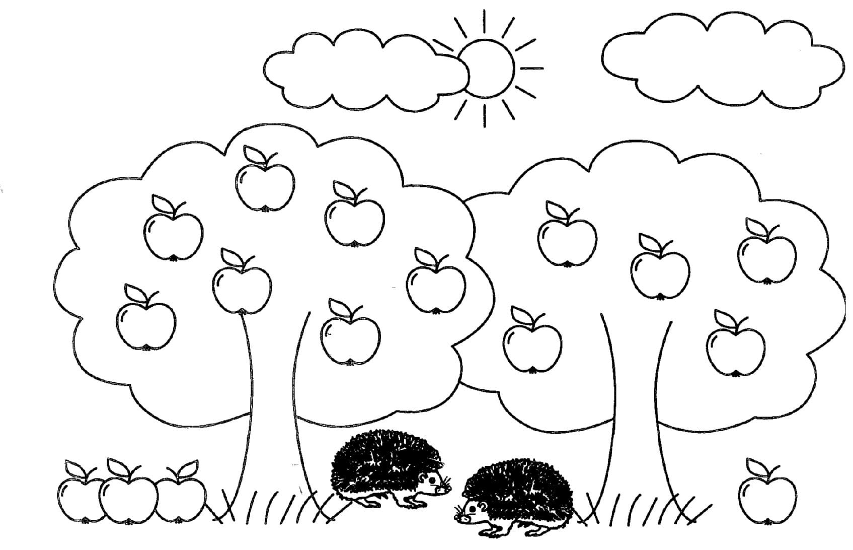 Яблоня раскраска для малышей