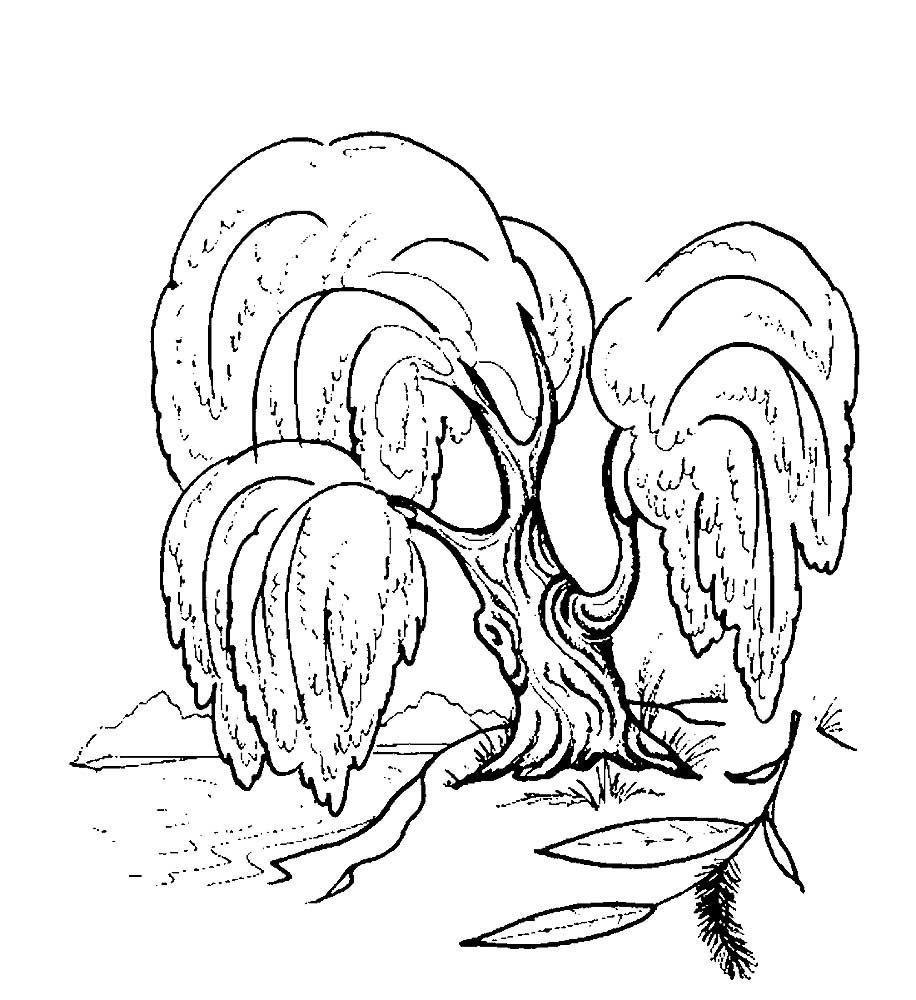 ![Раскраска дерево Ива]()