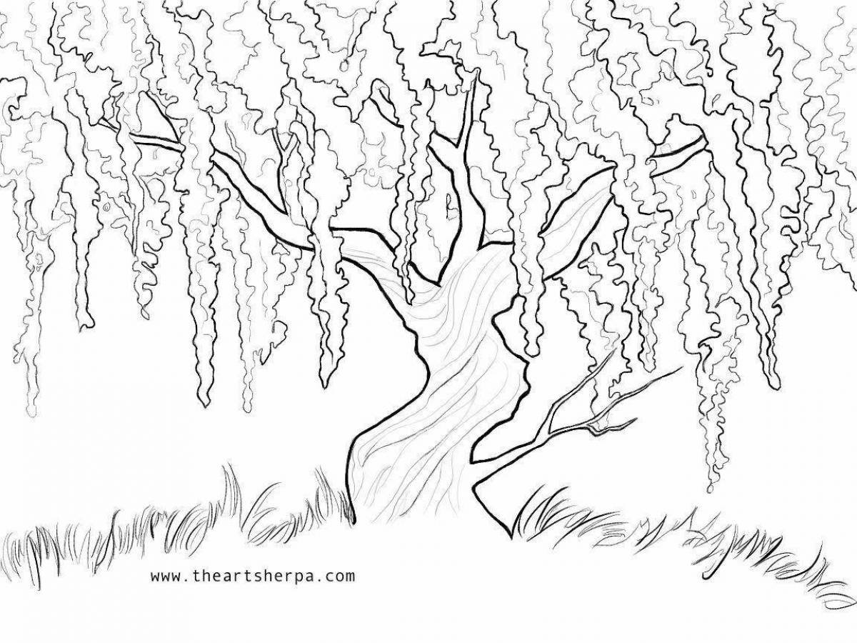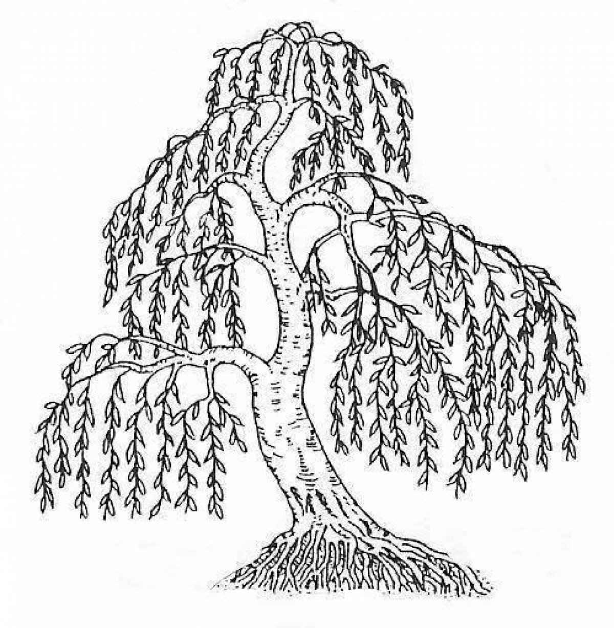 Раскраска дерево Ива