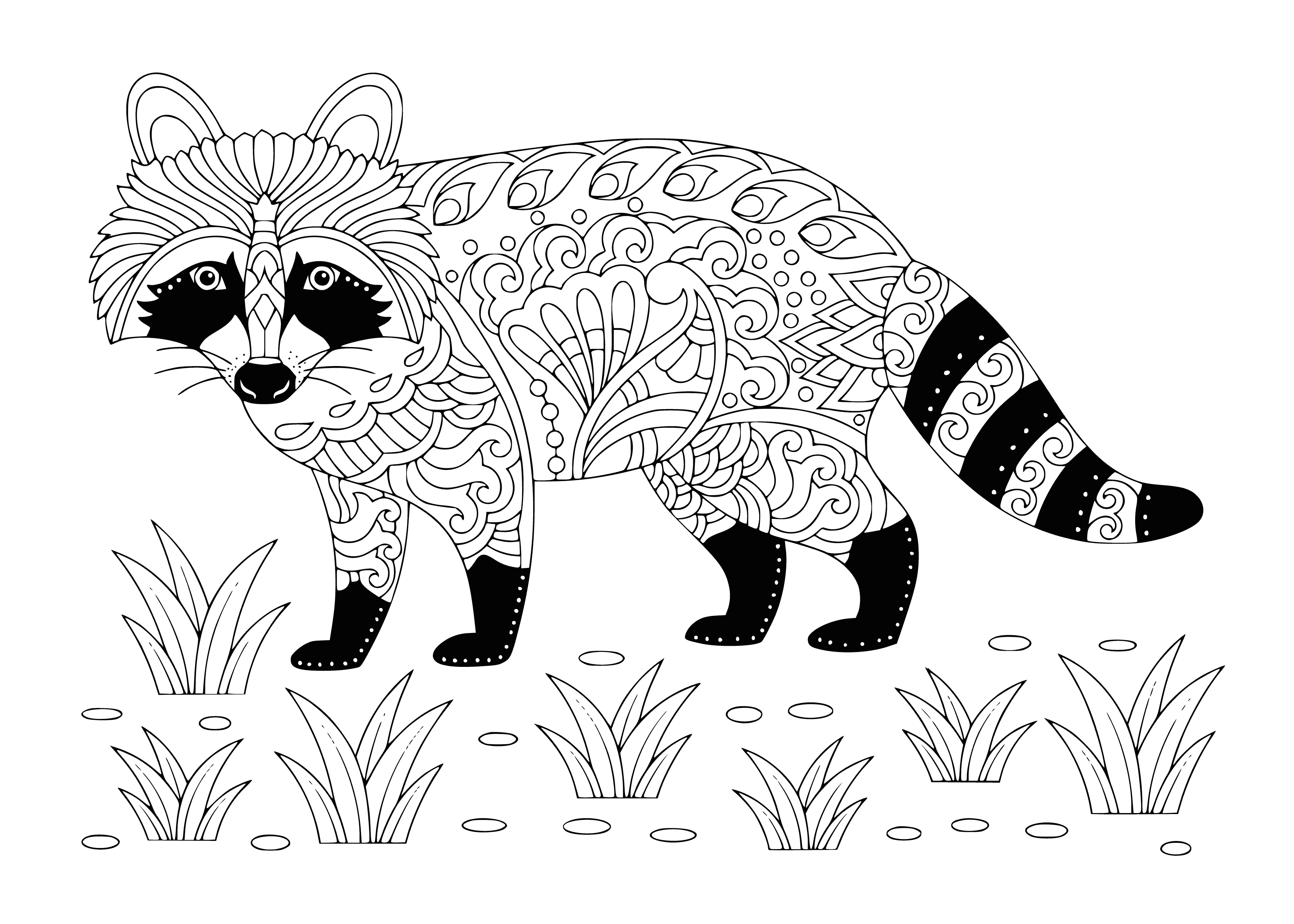 ![Раскраска Мандала енот]()
