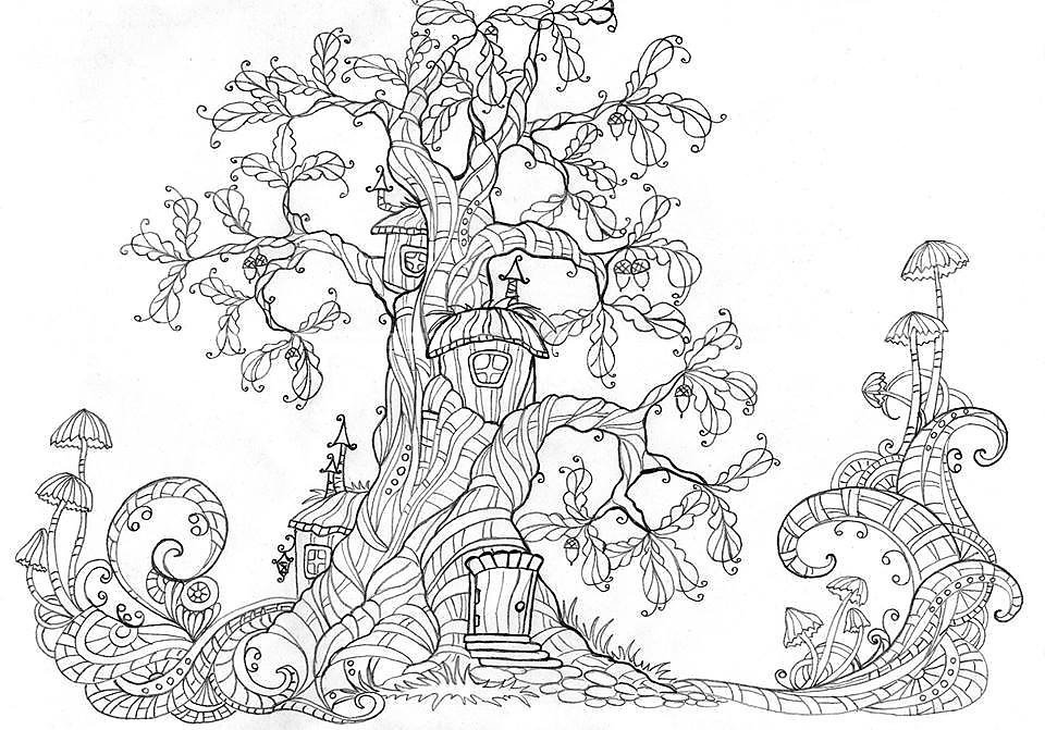 Сказочное дерево раскраска